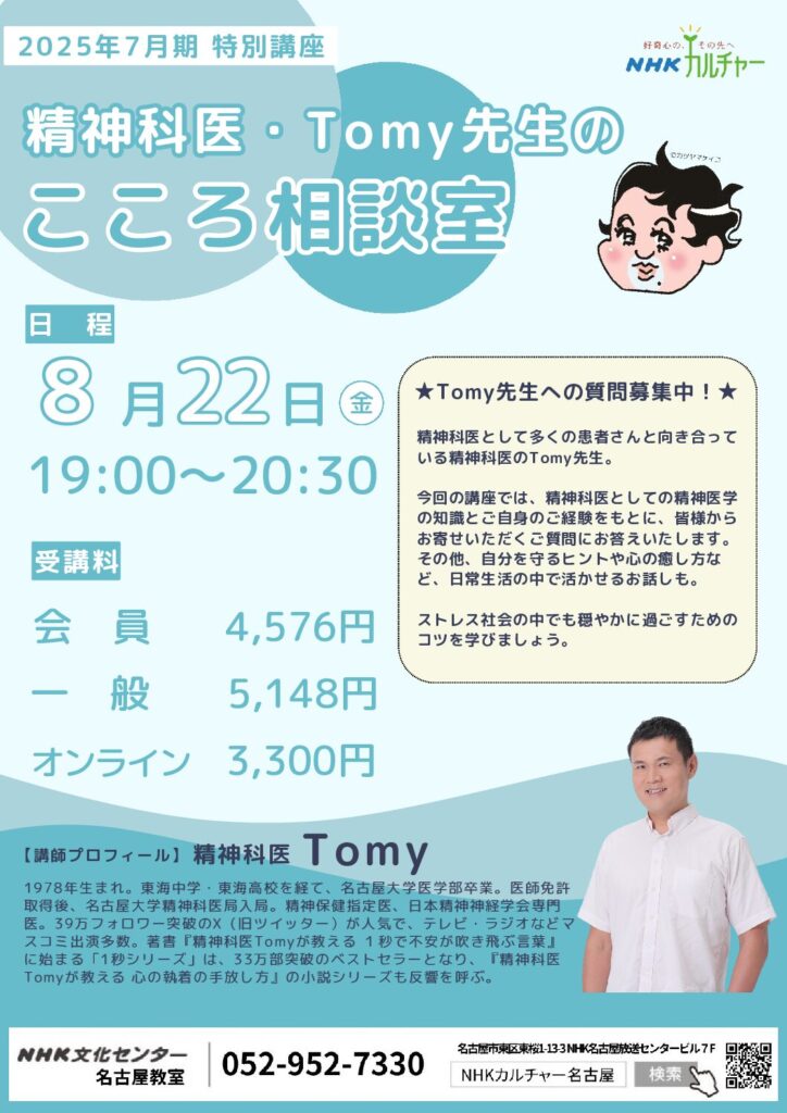 毎朝精神科医Tomyから朝礼メッセージが届きます。最新のイベントや新刊の情報も!